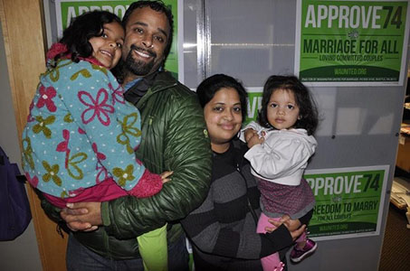 Anjulie lives in Ballard (Seattle) with her husband, Rahul Gupta and their two daughters Arundhati (6) and Ishani (2). Anjulie enjoys hanging with her family, knitting, pretending she can dance and being a "trouble-maker" for social justice.