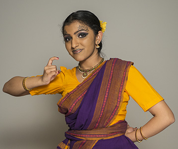 I have been dancing for more than ten years, and with Joyce Mausi for the last three. While I have enjoyed learning Bharatanatyam from amazing dancers and teachers, Joyce Mausi’s style is something very unique – she takes the time to explain the importance of every bend, every step, and every stretch. As a dancer, this helps me to visualize and understand why we move a certain way, or do a certain step, which allows me to both dance better and even to try and choreograph my own movements.